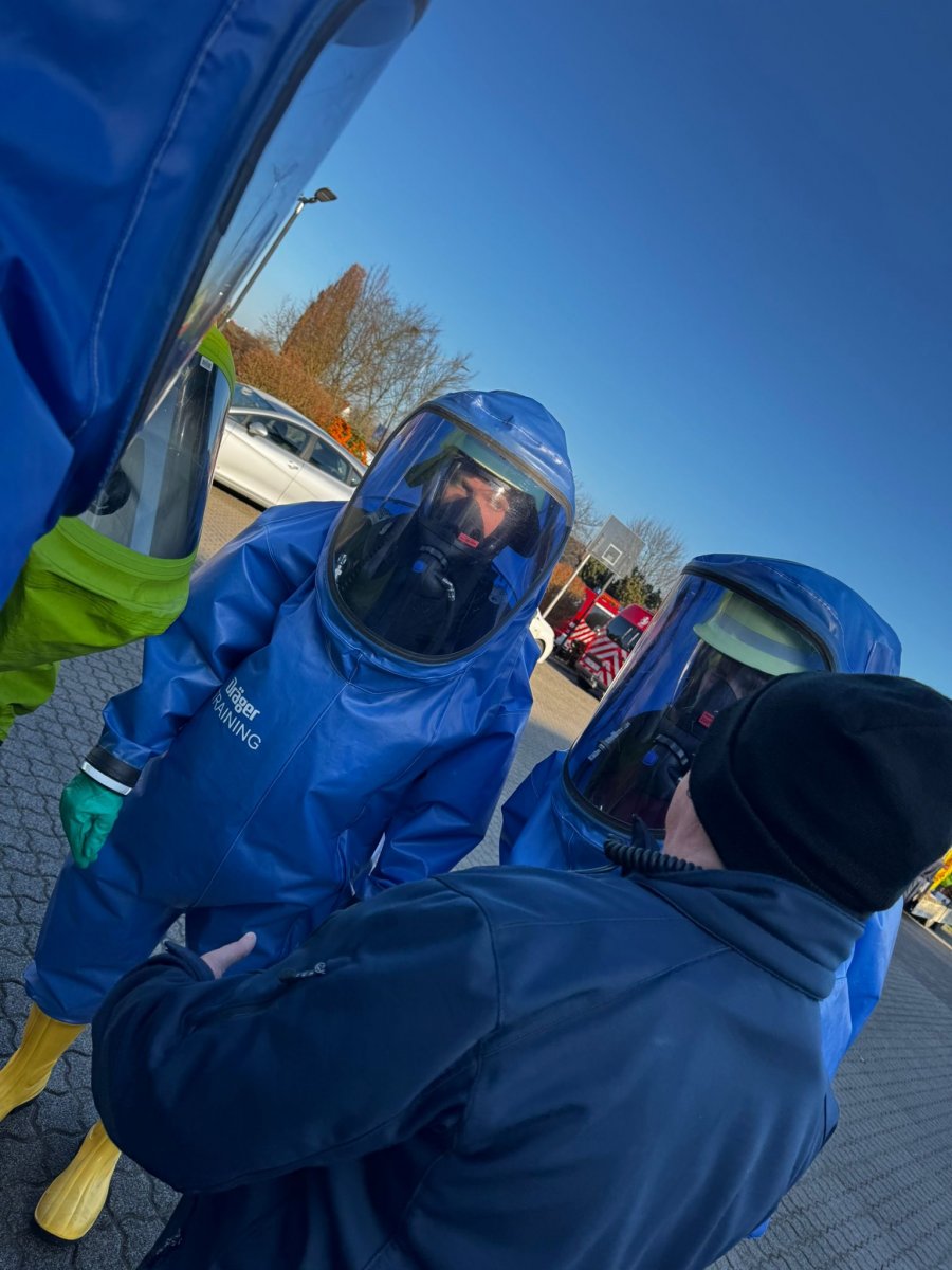 Bei diesem Lehrgang wird der sichere und regelkonforme Umgang mit dem Chemikalienschutzanzug vermittelt.