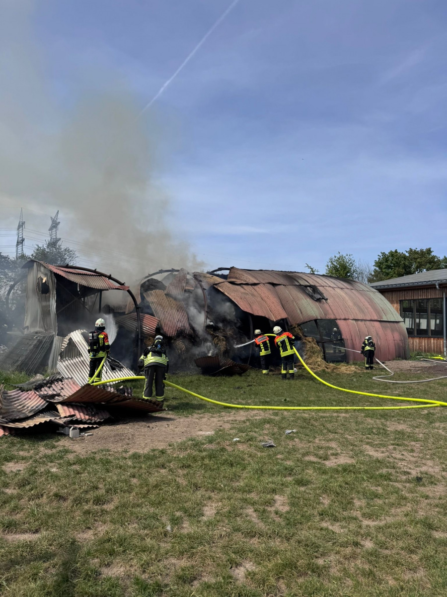 Aufgrund der sich veränderten Lage, die Heuballen wurden aus der Halle entfernt, wurden kontinuierlich neue Lagerbilder aus der Luft angefertigt.