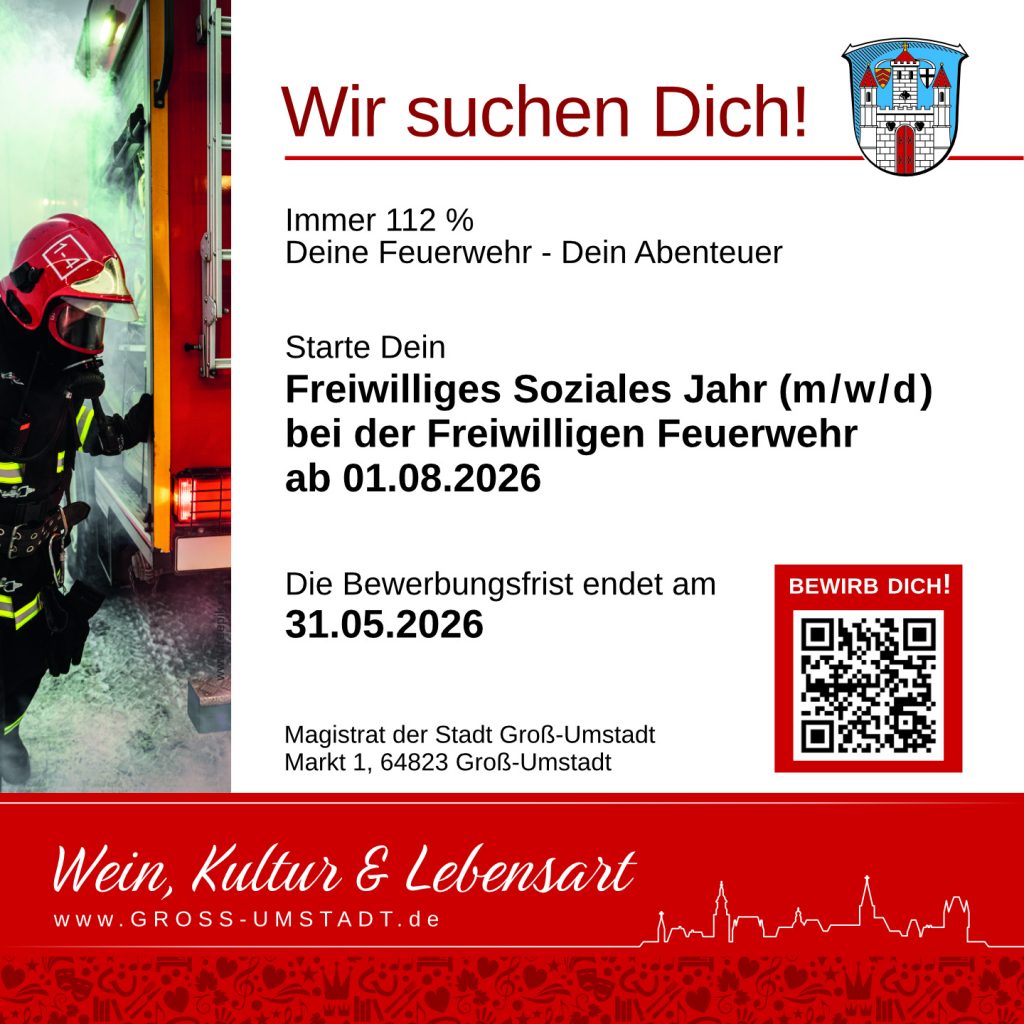 Alle weiteren Infos sind unter Freiwilliges Soziales Jahr bei der Freiwilligen Feuerwehr | Stadt Groß-Umstadt zu finden.