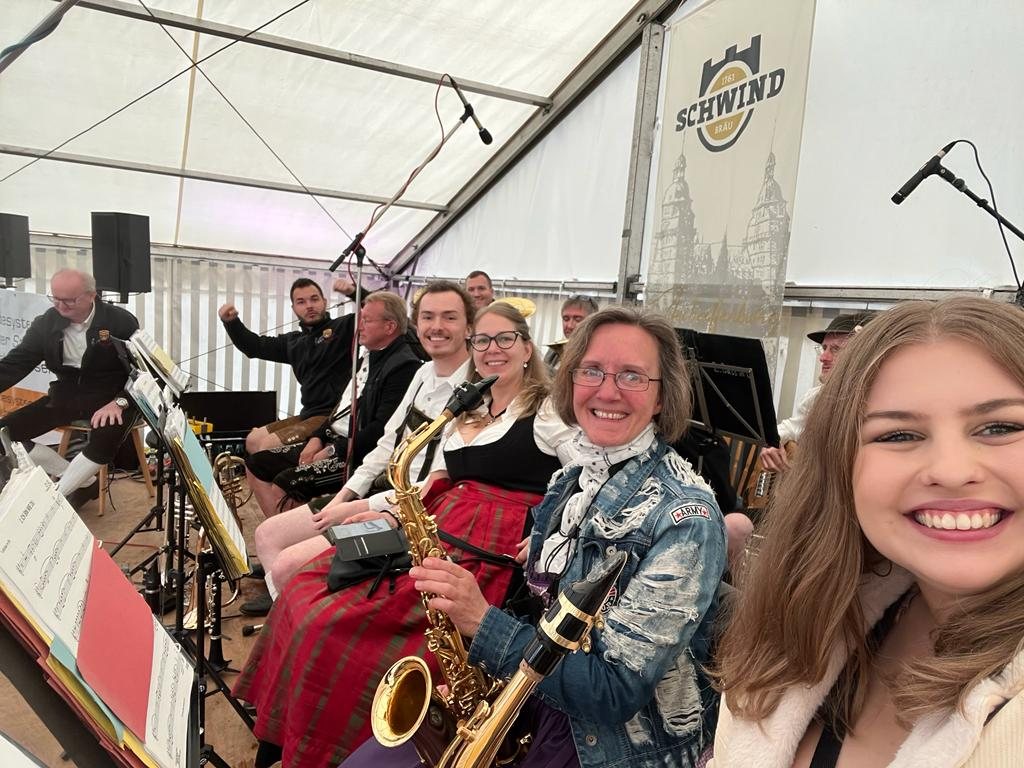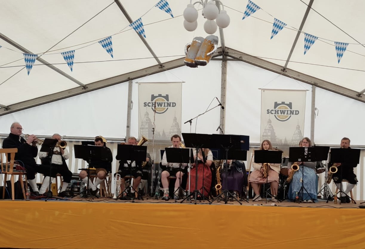 Am 25.09. haben wir nach langer Abstinenz endlich wieder in Harreshausen auf dem Oktoberfest gespielt. In kleiner böhmischer Besetzung spielten wir 4h traditionelle Blasmusik. Trotz regnerischem Wetter war die Stimmung im Festzelt ausgelassen und die Musik stilistisch auf den Punkt. Es war ein gelungener Frühschoppen und so traten wir nach getaner Arbeit und einer Stärkung durch reichlich Spießbraten den Heimweg an. Vielen Dank Harreshausen, wir freuen uns aufs nächste Jahr!