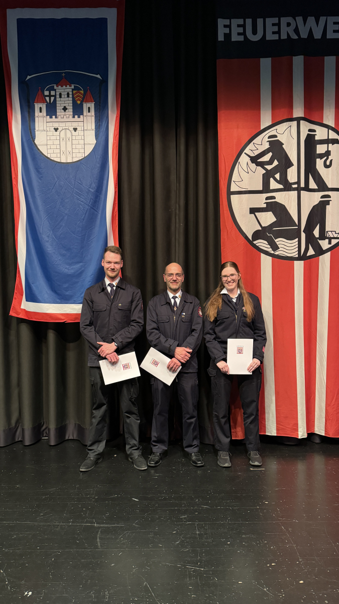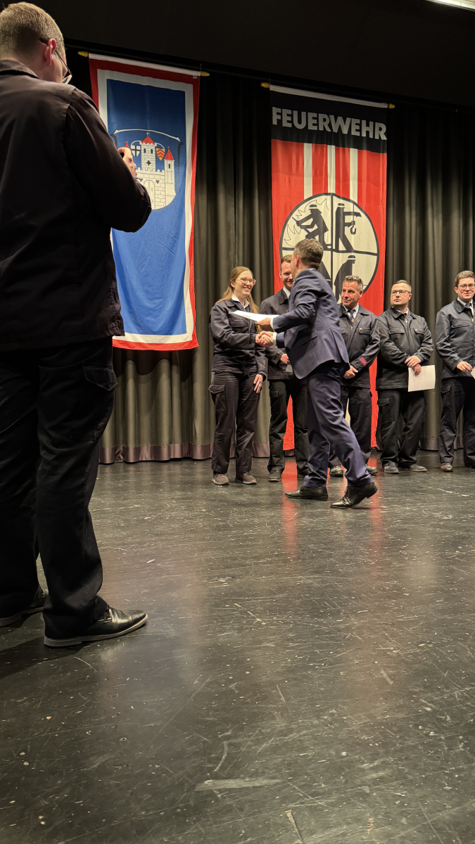 Letztlich standen zahlreiche Ehrungen auf der Tagesordnung. So wurden von Kleestadt die Kameradin Anja Kirchhöfer und der Kamerad Leon Bartusch mit Anerkennungsprämie des Landes Hessen für 10 Jahre aktive Mitgliedschaft in der Einsatzabteilung geehrt.
