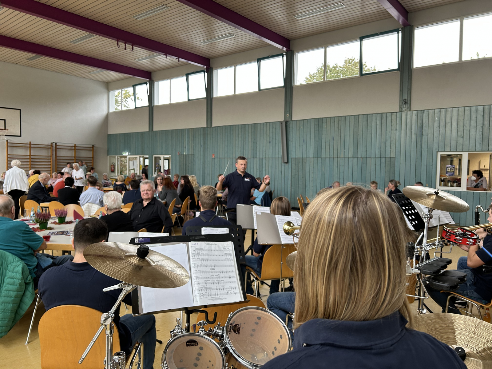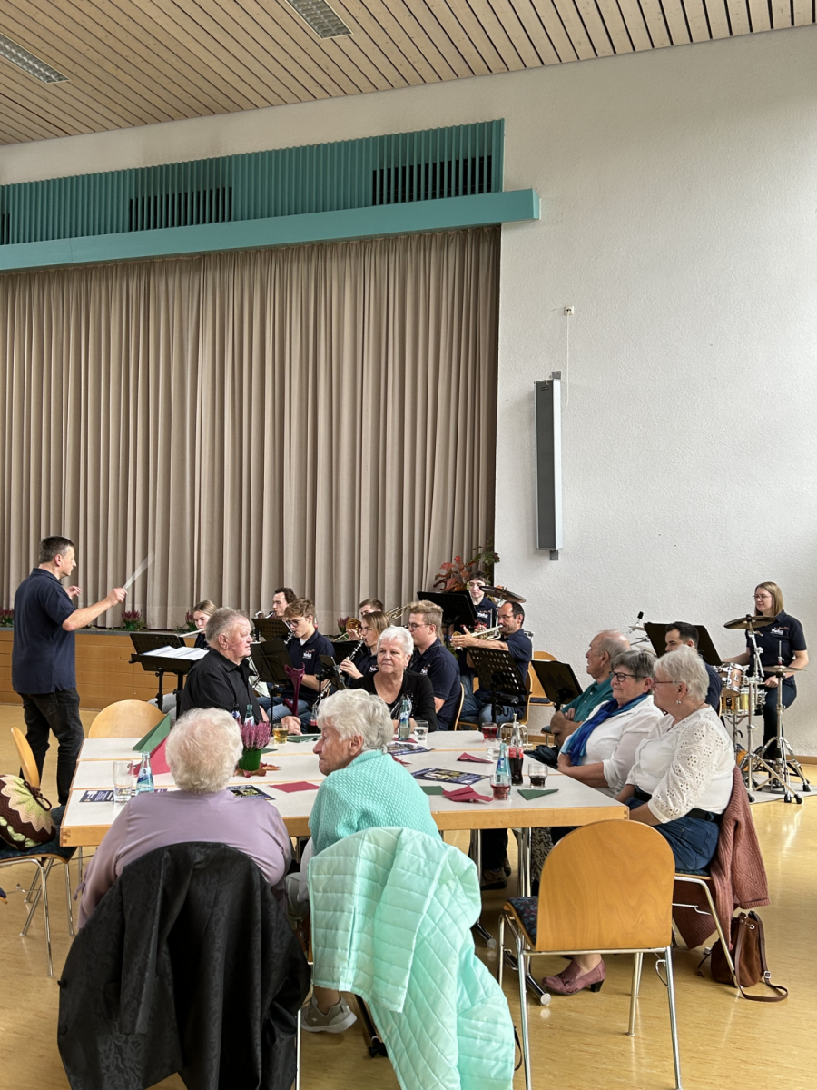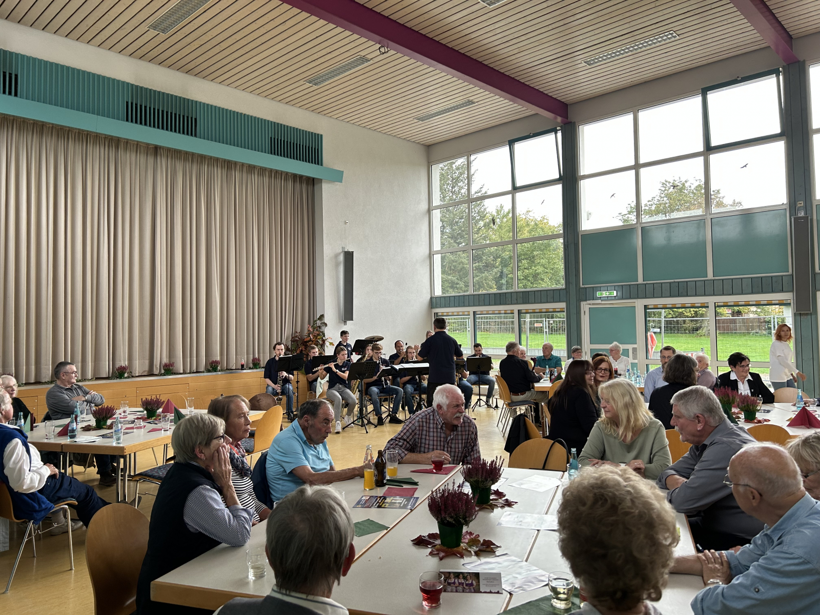 Am 23.10 war es endlich mal wieder soweit für das Jugendorchester Kleestadt beim Seniorennachmittag 2022, im Bürgerhaus Kleestadt, bei Kaffee und Kuchen, für beste Unterhaltung zu sorgen. Rund eine Stunde wurden die Besucher des alljährlich vom Kleestädter Ortsbeirat veranstalteten Events mit Musik aus Radio, Film und Fernsehen unterhalten. Mit Titeln wie „Music from Grease“, einem Medley aus dem bekannten Musical Grease, und „Rock around the Clock“ wurde neben dem Austausch an Gesprächsstoff, der an diesem Nachmittag unter den Senioren stattfand, zusätzlich auch für jede Menge musikalische Unterhaltung gesorgt. Rund 70 Senioren waren unser Publikum, darunter 36 Senioren über 80 Jahre. Zu letzterer Gruppe zählte auch unser aktives Vereinsmitglied Werner Reeg, über dessen Besuch wir uns sehr gefreut haben. Begleitet wurde die Veranstaltung unter anderem von Ortsvorsteherin Marina Glorius, Pfarrer Erhard Weilbächer, sowie unseren im September gekrönten Weinhoheiten.