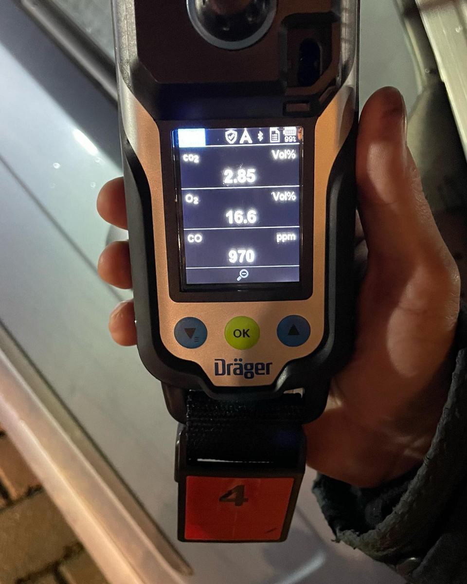 Hierzu setzte sich ein Kamerad mit vollständiger Brandschutzkleidung und Atemschutzgerät in ein PKW. Im Kofferraum wurden Einweggrills angezündet. Durch die Verbrennung wurden Schadstoffe freigesetzt, die sich auch auf der Einsatzkleidung niederlegten. Nach gut 15 Minuten Einwirkzeit, wechselte der Kamerad rasch in ein anderen PKW. Hier wurde gemessen, wie sehr Schadstoffe noch aus der Kleidung austreten und sich dann im PKW befinden. Mit diesem Versuch wurde simuliert, was passiert wenn man nach einem Brandeinsatz sich mit der Einsatzkleidung wieder ins Feuerwehrauto setzt und diese anschließend im Feuerwehrhaus in seinen Spint aufhängt. Das Ergebnis hat für sich gesprochen. So konnte jeder der Anwesenden auf dieses Thema sensibilisiert werden.
