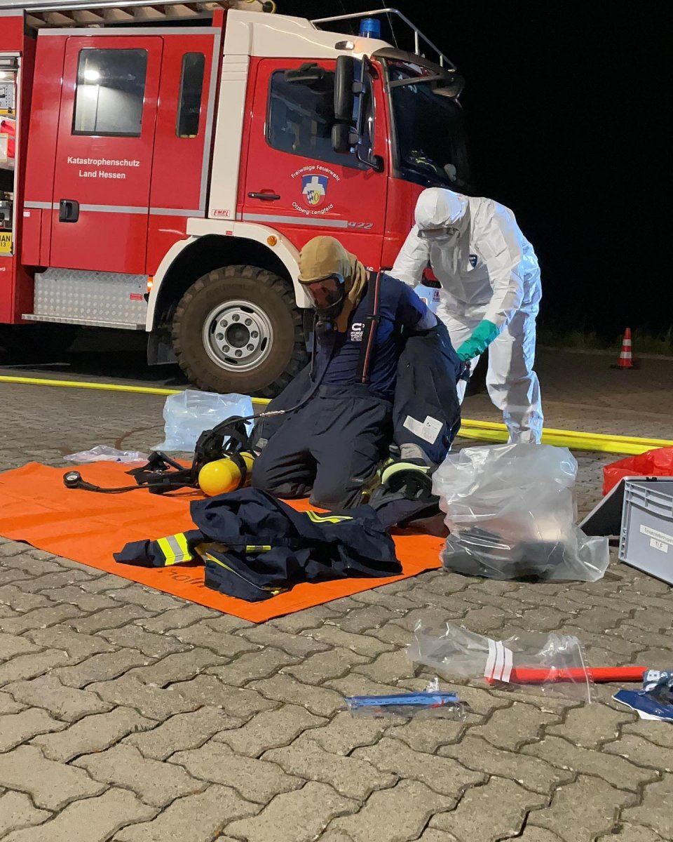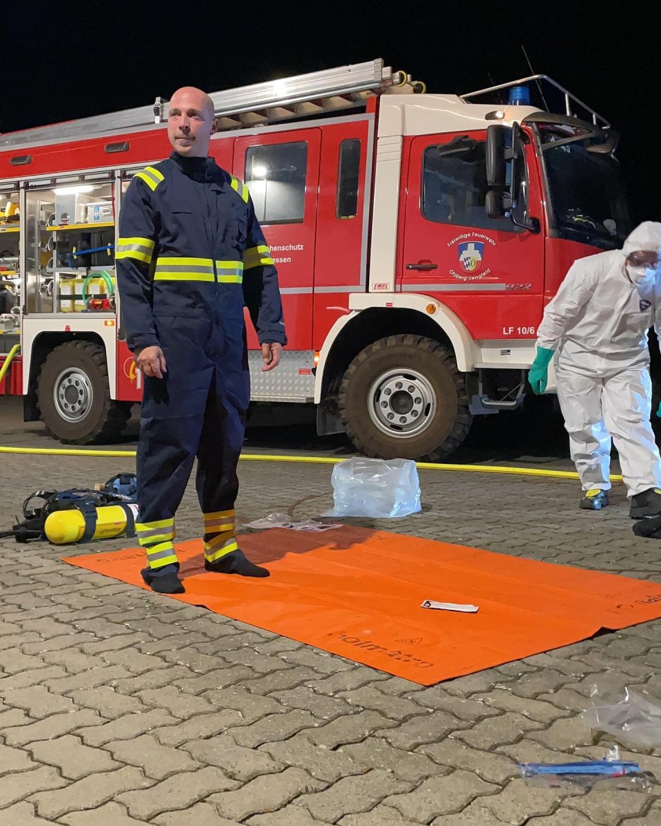 Anschließend wurde das richtige entkleiden vorgeführt, welches nach dem Konzept der Feuerwehr Bad Orb entworfen wurde.