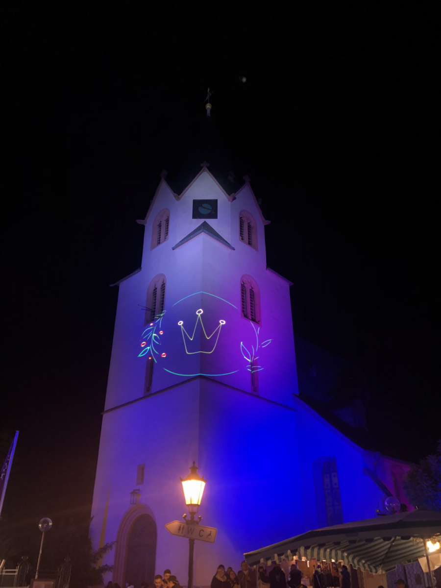 Ein schöner und neuartiger Abschluss für das 74. Winzerfest war am Montagabend die Laser-/Lichtershow. Die Laser-/Lichtershow ist ein neues Konzept, dass das als Ersatz für das Feuerwerk einrückt. Bürgermeister René Kirch ließ es sich nicht nehmen wenige Minuten bevor das Fest endete auf der Bühne vor dem Rathaus nochmal selbst einige Woi-Hits mit den Weinhoheiten des Vorjahres sowie den Weinhoheiten der aktuellen Amtszeit 22/23 anzustimmen und wurde dafür vom Publikum gefeiert.